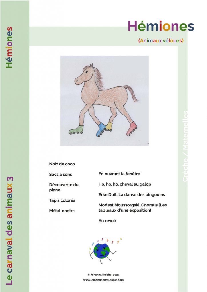Afin de vous donner des idées pour vos propres séances de musique avec les enfants en crèche ou en école maternelle, je peux mettre à votre disposition, au fur et à mesure, des documents pdf à télécharger.